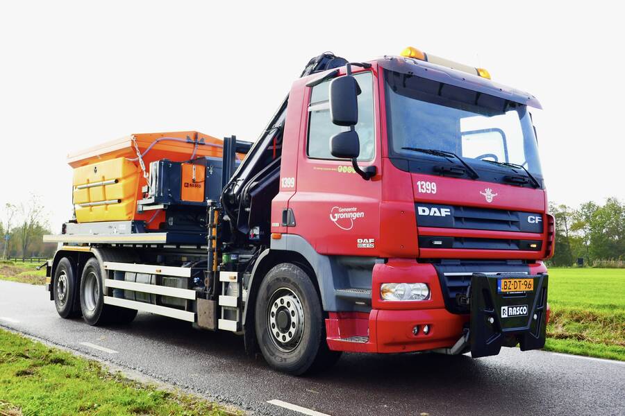 Aan Gemeente Groningen mochten wij een 4m3 Rasco Solid T natzout strooier leveren. De strooier is uitgevoerd met een hydraulisch powerpack voor de aandrijving. De Rasco Solid strooier werd door Rondaan op een afzetbaar haakarm frame gemonteerd. Dit frame is zeer uitgebreid geconserveerd en aan de bovenzijde afgesloten zodat bij het laden van de trechter het zout niet in het truckchassis kan vallen. De Rasco Solid strooiers zijn degelijke en praktisch gebouwde wintermachines welke zijn toegerust op hun taak. Ook werd op het truckchassis een Din-plaat gemonteerd t.b.v. inzet met sneeuwploeg.