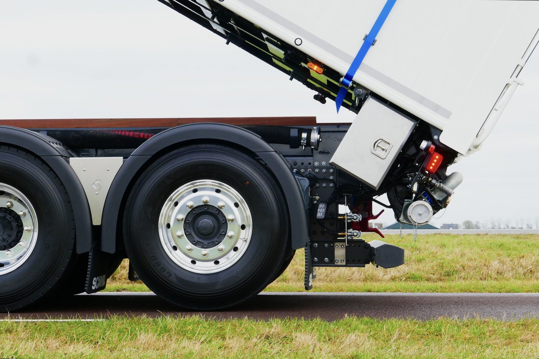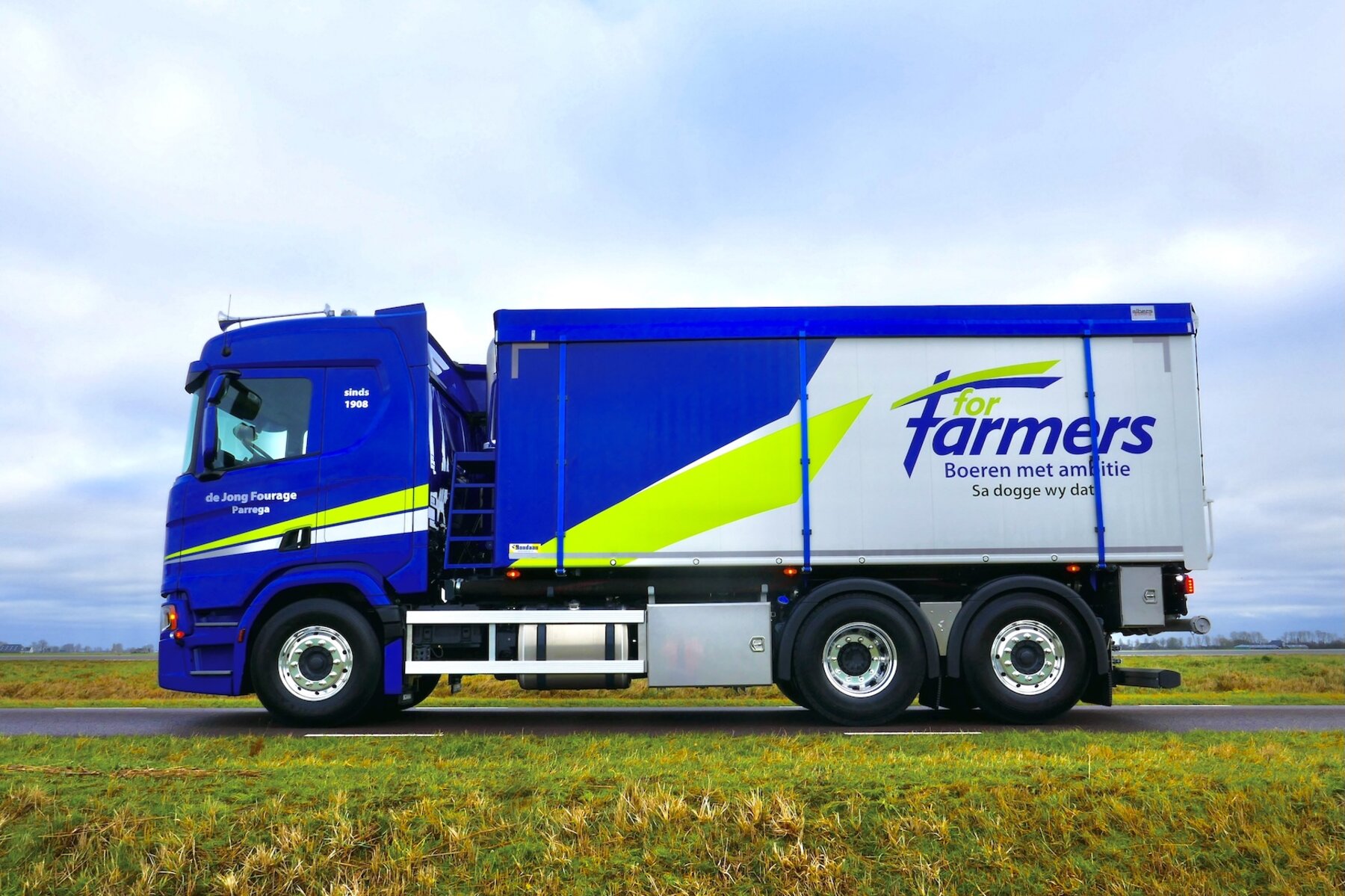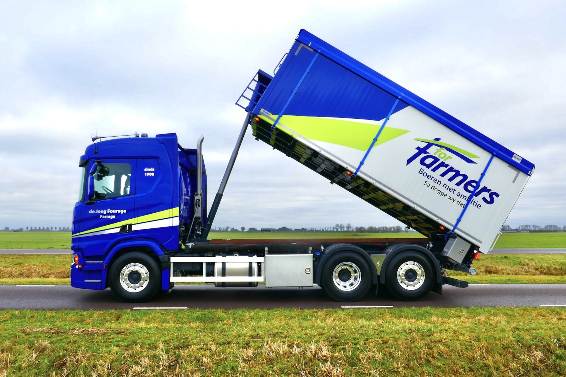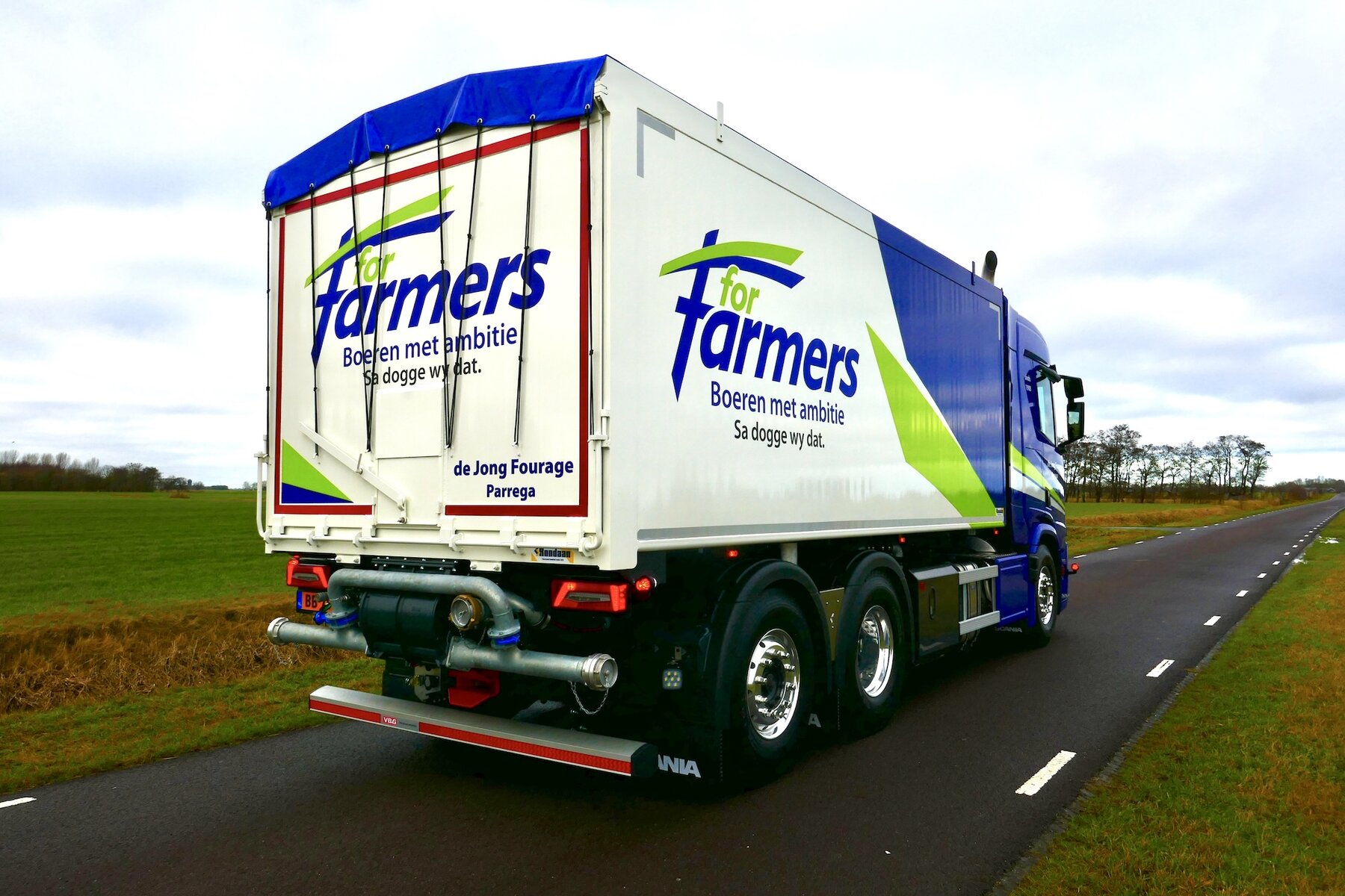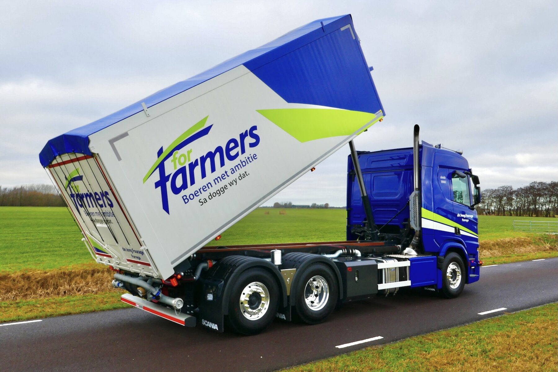 In het ontwerp is rekening gehouden met wisselende ladingen, verschillende loslocaties en het netjes werken rondom het erf. Alles moet overzichtelijk blijven, ook wanneer meerdere producten in één rit worden vervoerd.