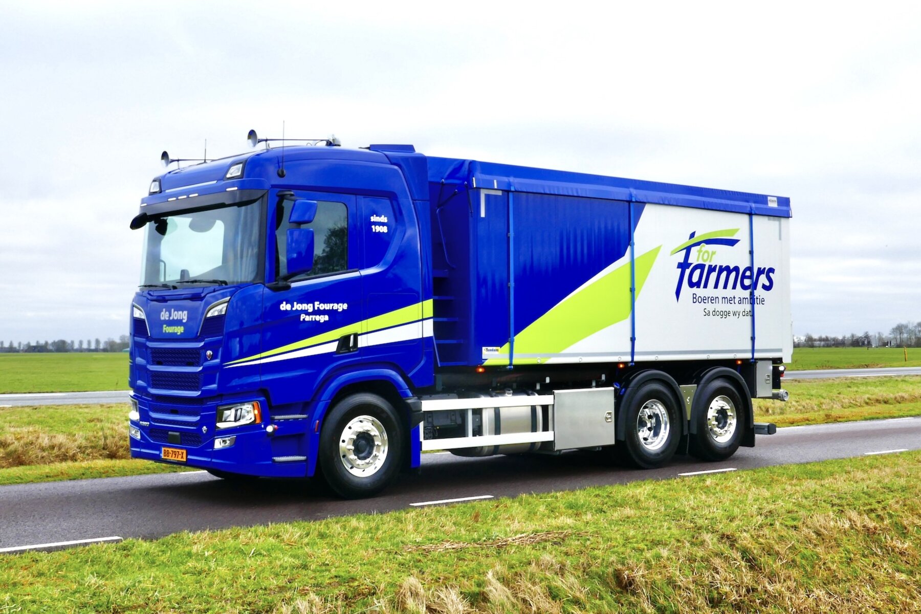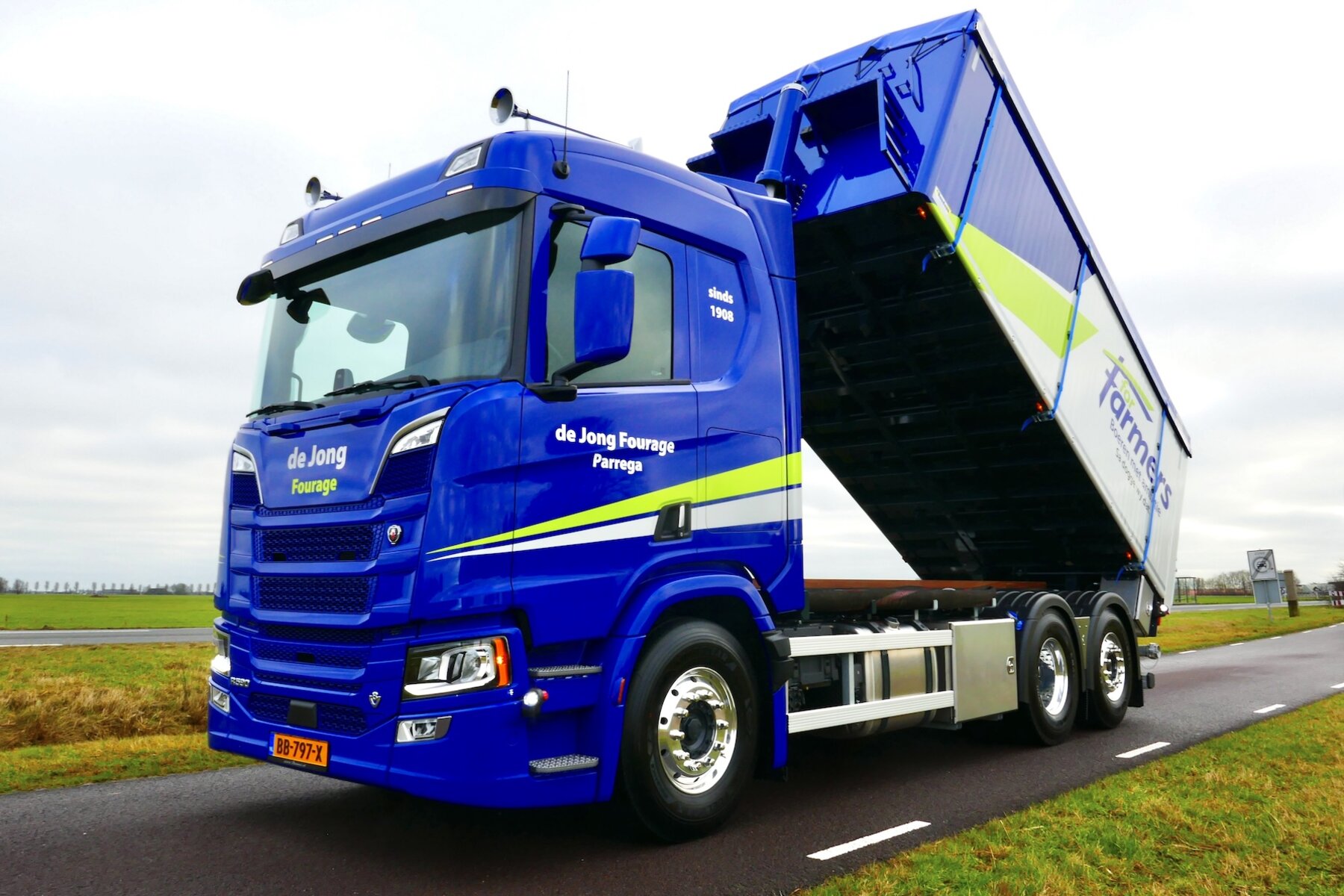 Voor De Jong Fourage uit Parrega verzorgde Rondaan de opbouw van een Scania R590 6x2 chassis met een nieuwe aluminium bulkkipper. De opbouw is ingericht voor het dagelijks transport en het pneumatisch lossen van mengvoeders bij agrarische bedrijven.