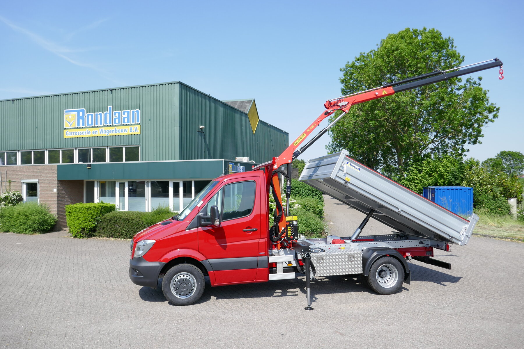 Voor Gemeente Harlingen mochten wij i.s.m. Wensink Mercedes-Benz deze Sprinter voorzien een lichtgewicht aluminium JPM kipper en een Palfinger PK2900A hydraulische autolaadkraan. Ook werden 2 gereedschapskisten gemonteerd. Dat is de winst van een Rondaan!